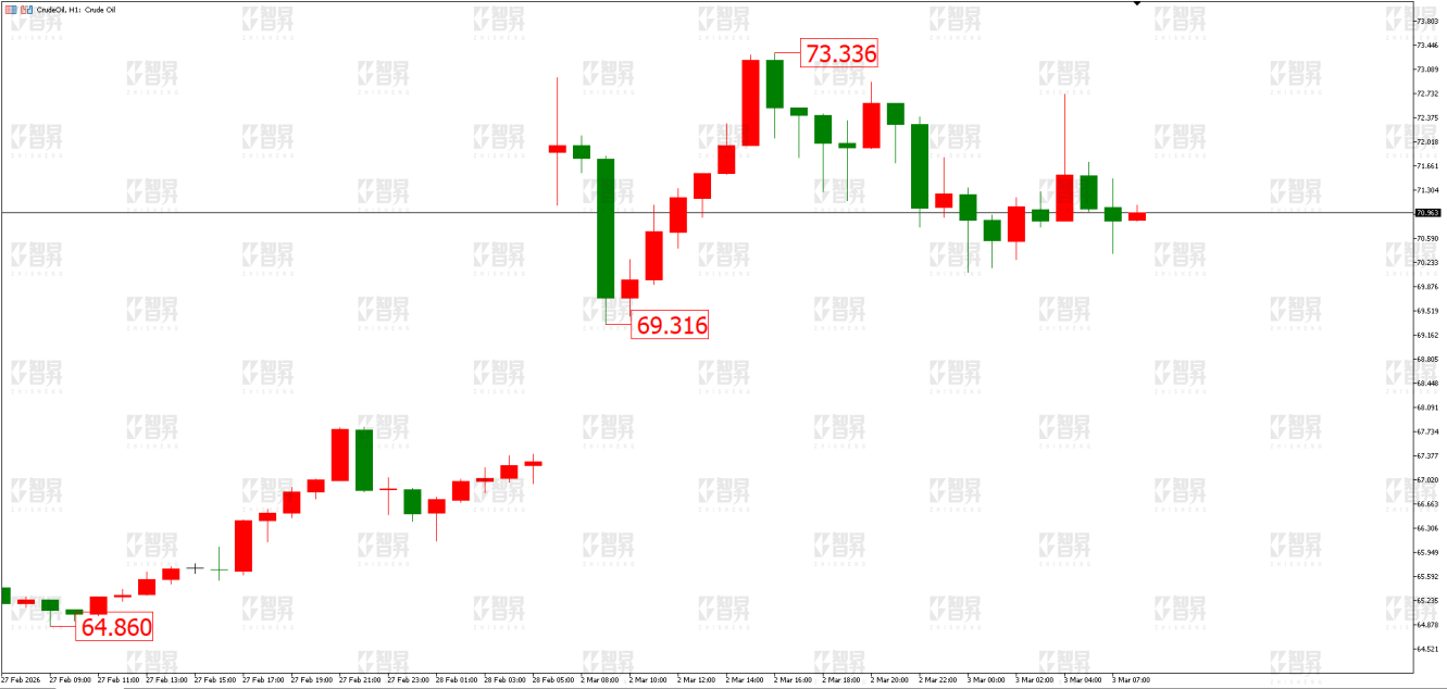 技术面:昨日收阴线。日线级别,价格持续向上攀升,短期内在73.30美元受到压制。1小时级别,价格运行在60/120日均线上方,目前正逐步修复乖离。今日下方关注69.50美元的支撑,上方关注72.60美元的压制。