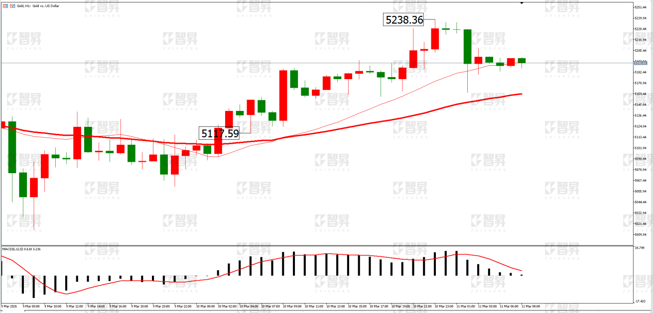 技术面:日线上,隔夜行情上行且收阳线,表现比较坚挺。同时行情有上破近期调整箱体的迹象。日内关注行情回调测试下方5144美元以下支撑情况。